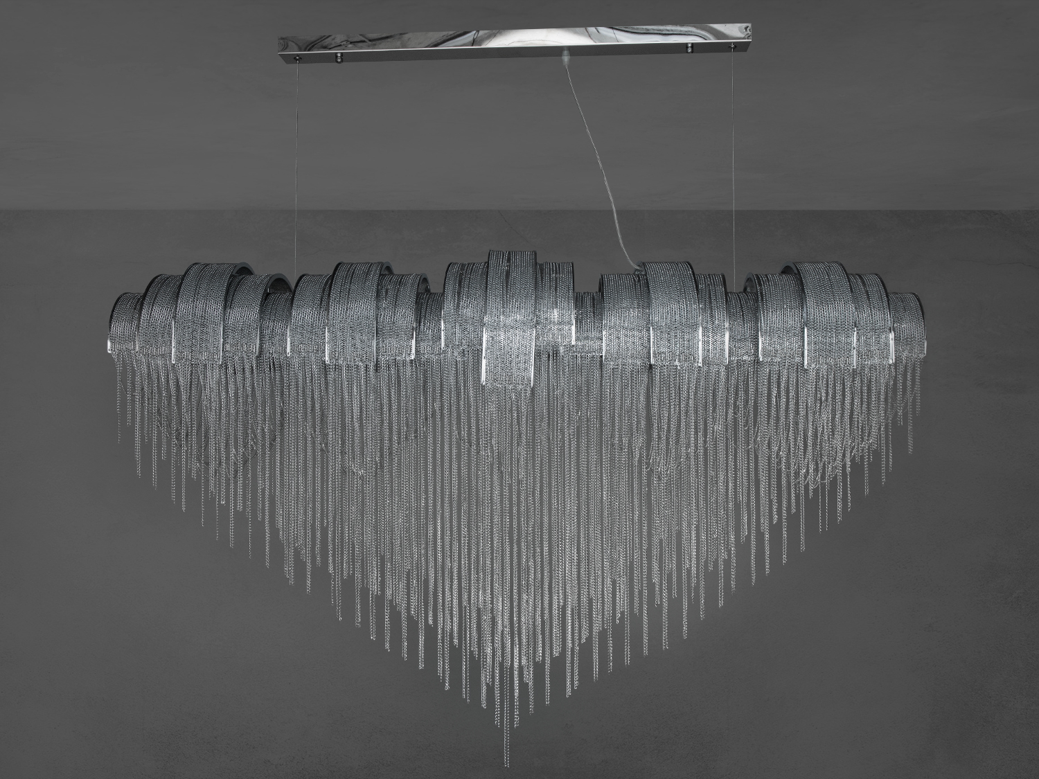 Тисячі металевих ланцюжків м'яко розсіяють світло на ваше приміщення, створюючи мільйони тіней. Легка природна рухливість ланцюжків, реакція на вітер і проходження повз люстру, створюють затишне відчуття світла через листя. Люстра люстра має по істині неймовірну легкість і грацію.