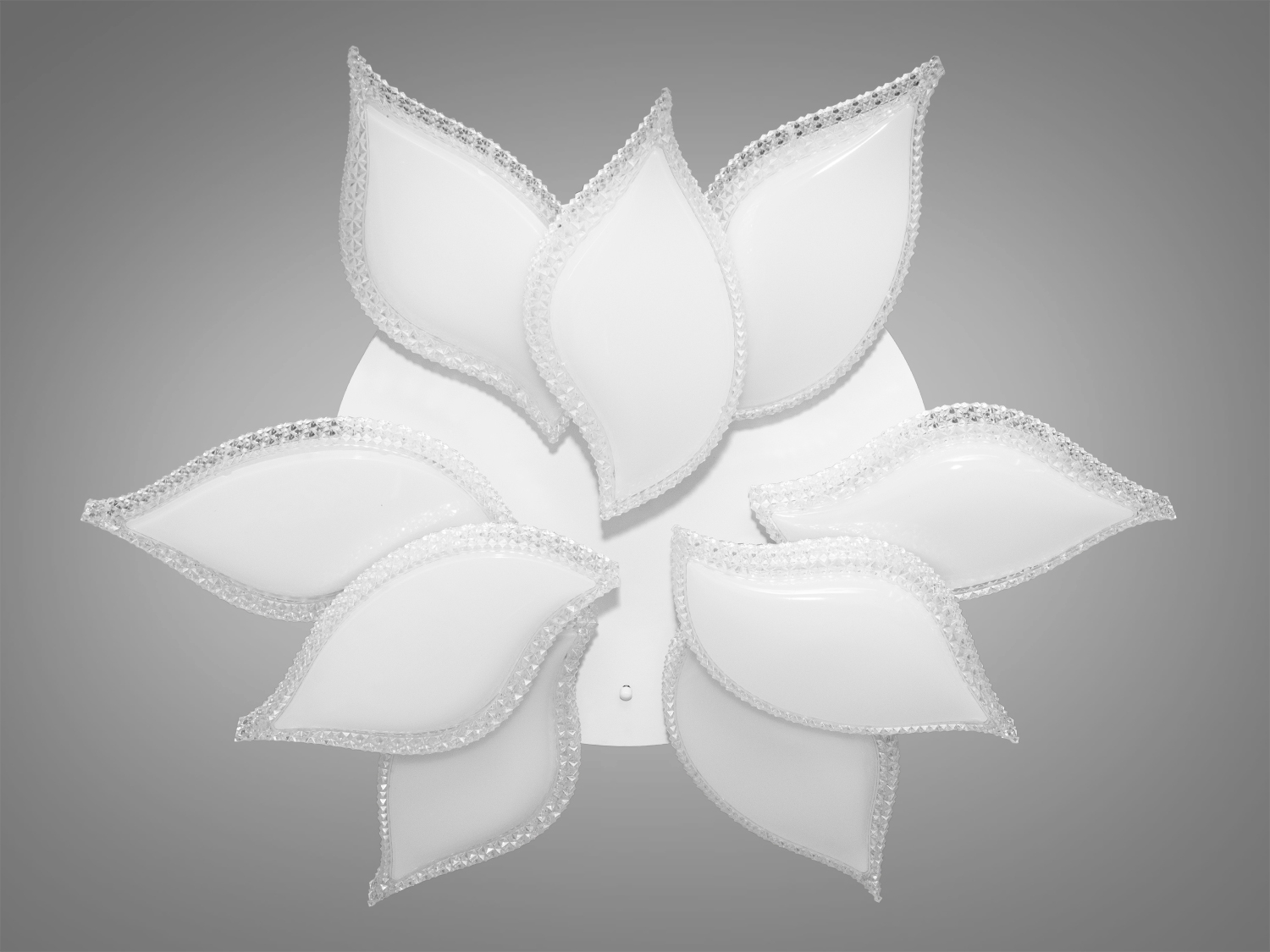 Люстра світить яскраво, але не сліпить за рахунок матеріалу – акрилу, до того ж цей матеріал дуже міцний – його важко зашкодити. Застосовується для зали, вітальні, кухні, спальні, їдальні, дитячої, тому що відсутні елементи, що б'ються. Кріпиться до підвісних, натяжних, звичайних стель.