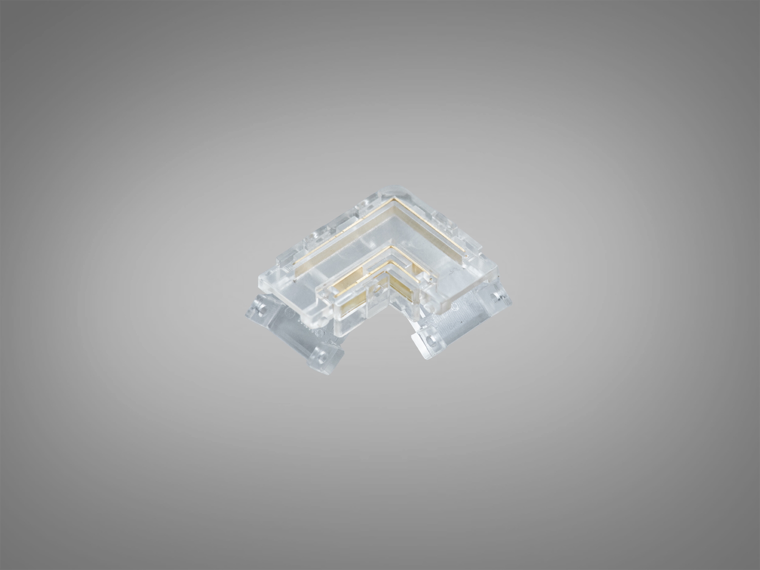Рішення часто обирають для кутових ділянок у меблевому підсвічуванні (шафи, полиці, кухонні зони), алюмінієвих профілях з розсіювачем, вітринах, дисплеях, світлових коробах і декоративних нішах. Там, де важлива суцільна лінія світла й чистий вигляд стику, прозорий конектор може дати помітну візуальну перевагу.