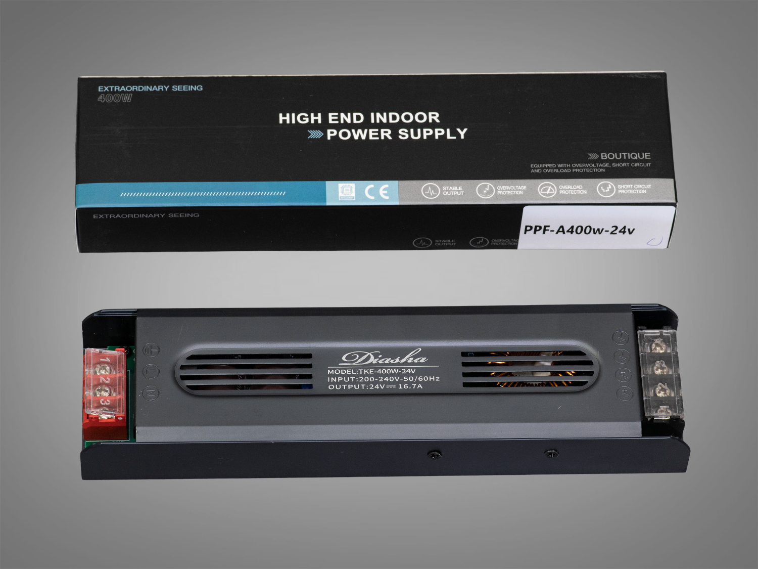 Блок живлення PPF-A300W-12V є еталоном серед пристроїв для професійного освітлення, адже поєднує в собі надзвичайну потужність, надійність і довговічність. Його конструкція базується на міцному алюмінієвому корпусі із пасивним охолодженням, що забезпечує ефективний тепловідвід навіть при інтенсивній експлуатації. Всередині всі елементи залиті компаундом, що захищає їх від вологи, пилу та механічних пошкоджень, гарантуючи довготривалу стабільну роботу.