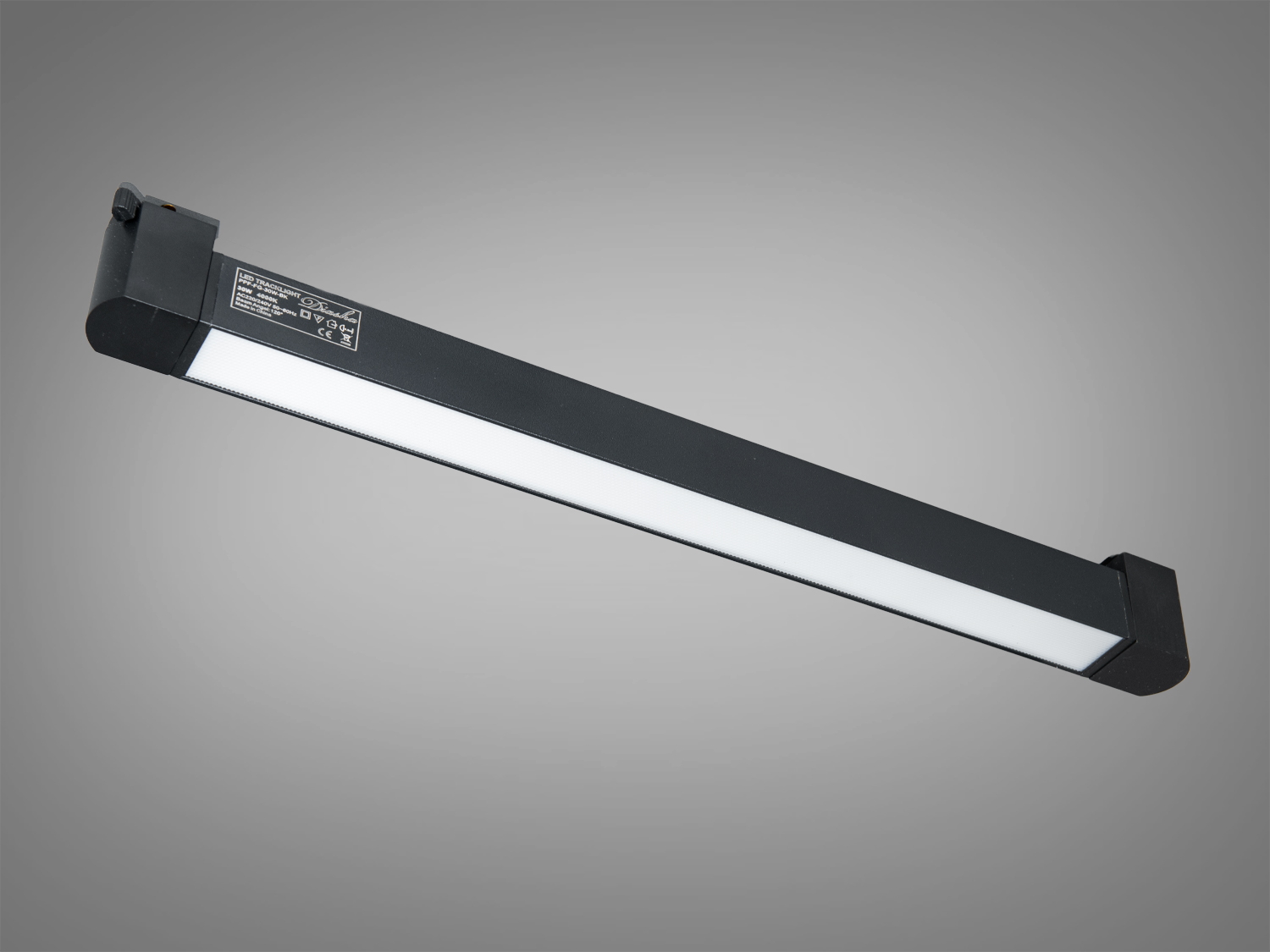 Візуально світильник — це акуратний прямокутний лінійний модуль у білому кольорі з дискретними кріпленнями. Металевий корпус сприяє відведенню тепла, що зазвичай позитивно позначається на стабільності світлового потоку. Біле покриття гармонійно інтегрується в світлі стелі та мінімалістичні інтер’єри, а лаконічна геометрія добре поєднується з іншими трековими приладами.