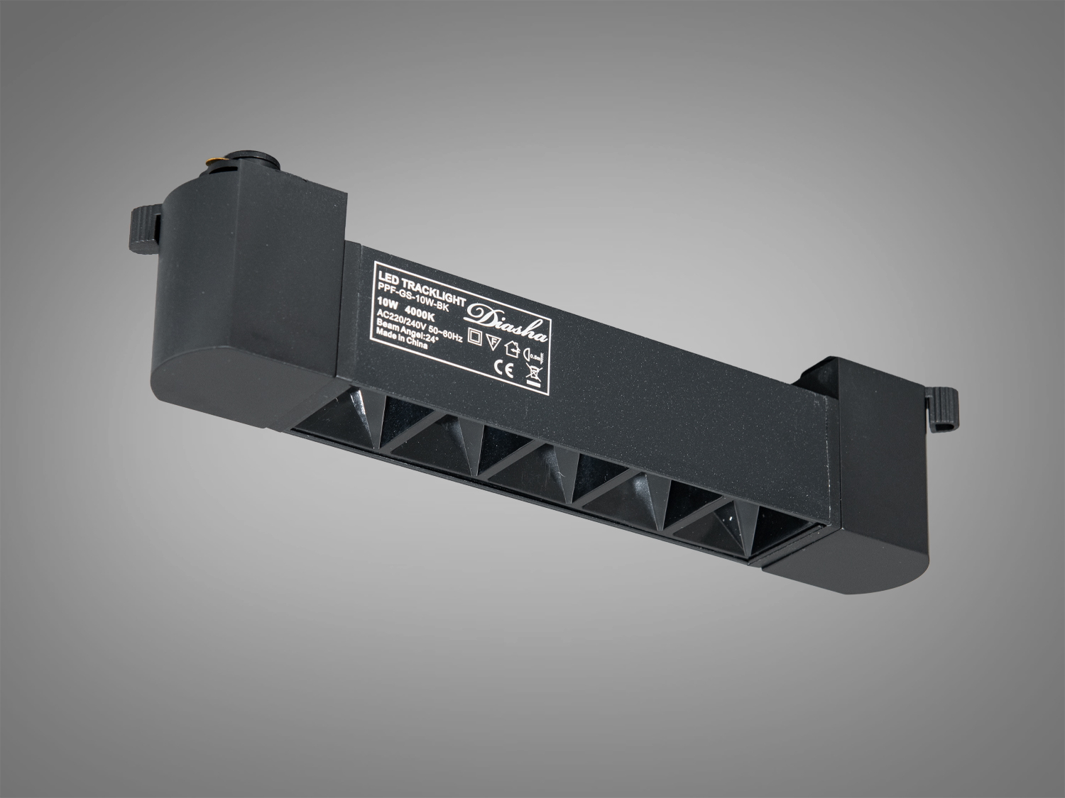 - Підключення до треку 220 В — монтаж на стелі або стіні виконується швидко; трековий адаптер забезпечує надійний контакт і фіксацію на рейці.