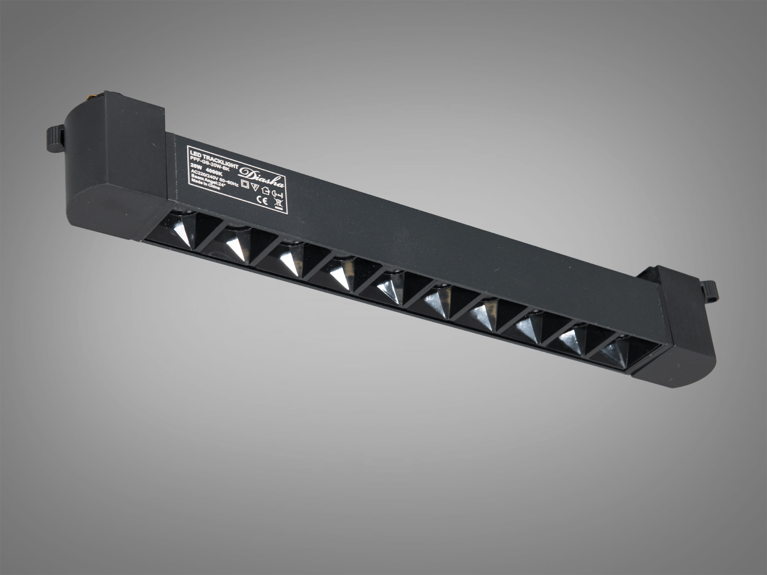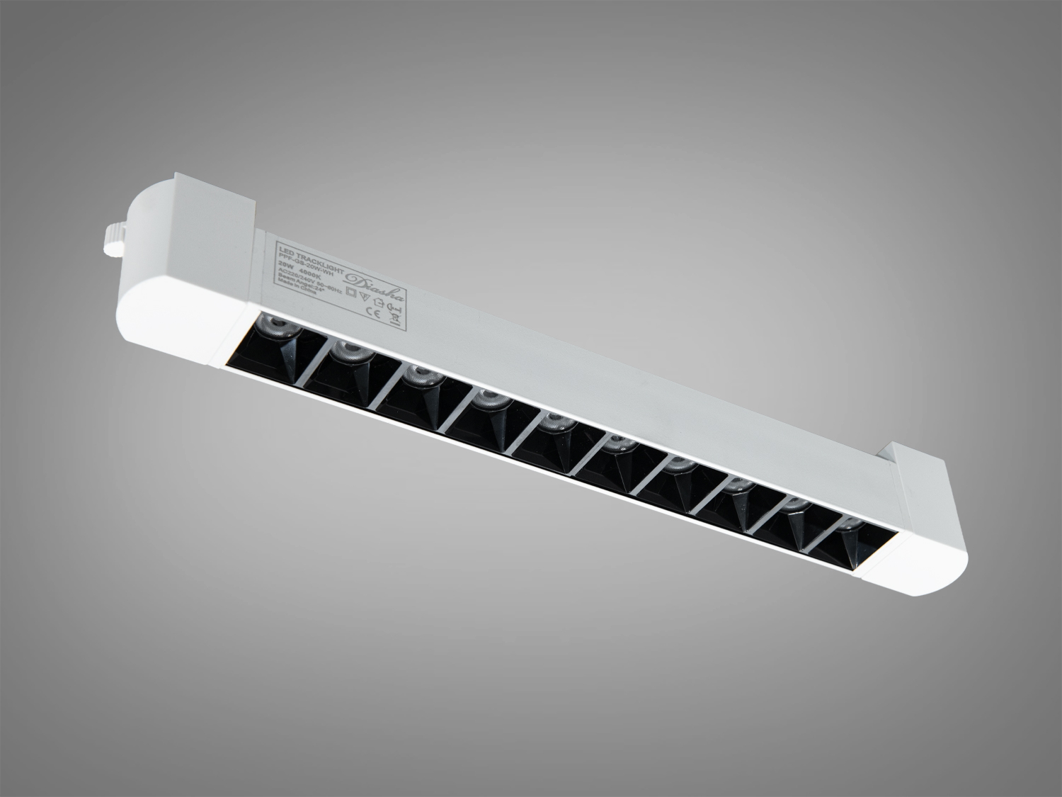 - Гнучке переналаштування: світильник легко переставляється вздовж рейки, змінюючи світлову композицію без переробки проводки.