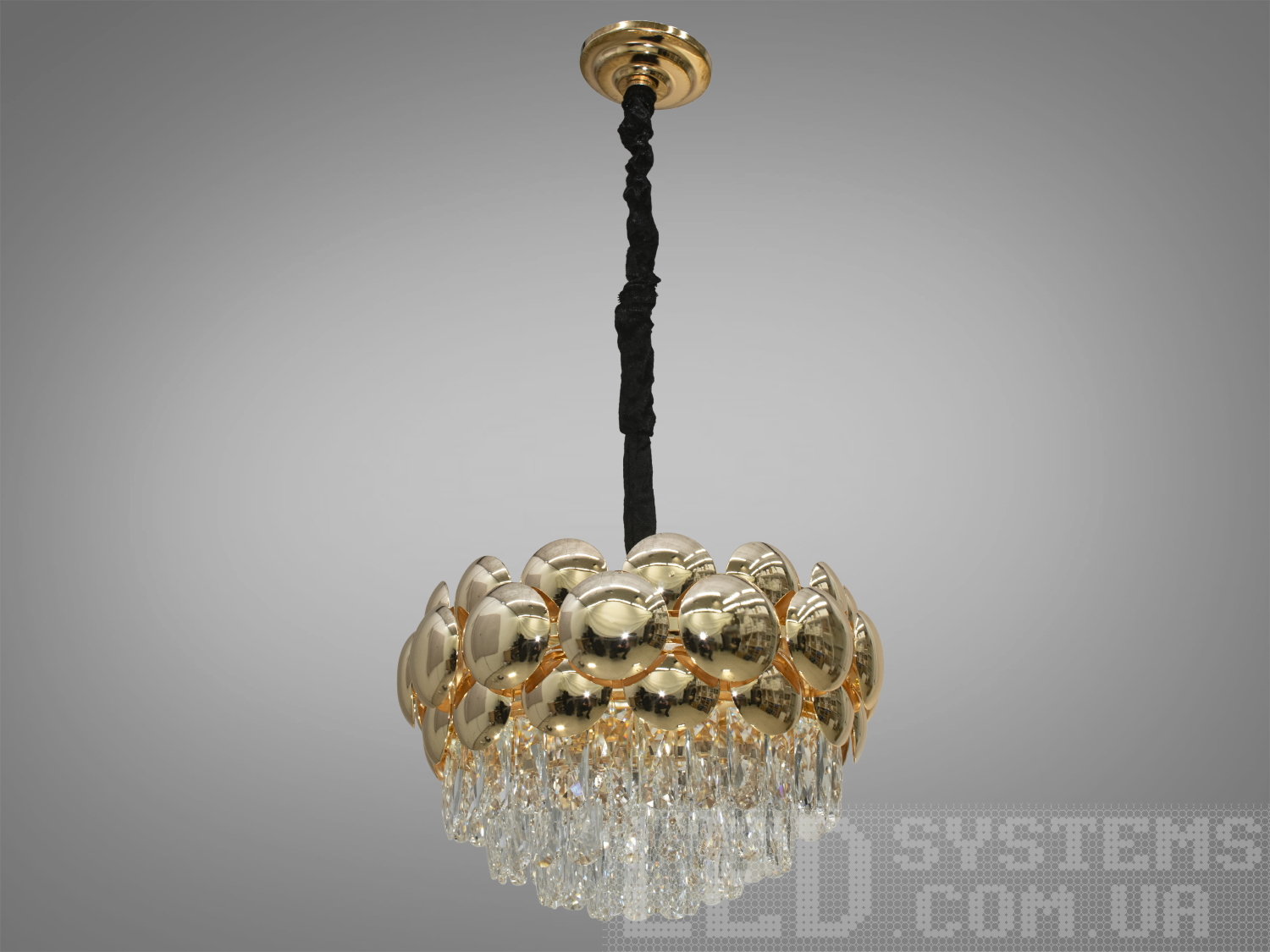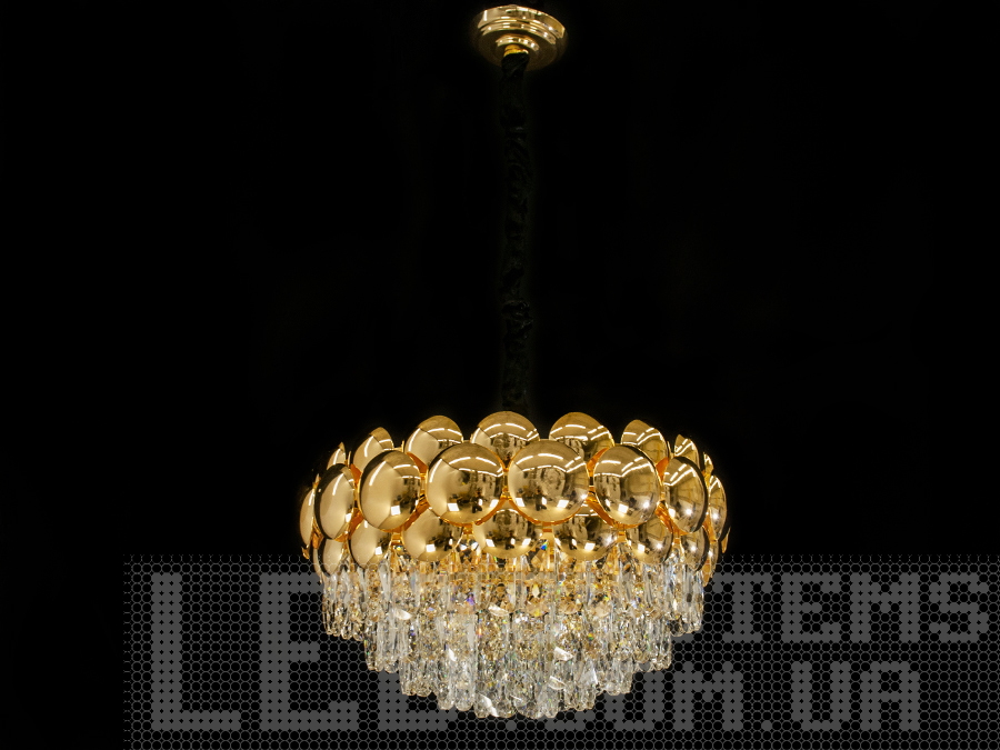 Кришталева люстра у вітальню, колір золото на 9 ламп