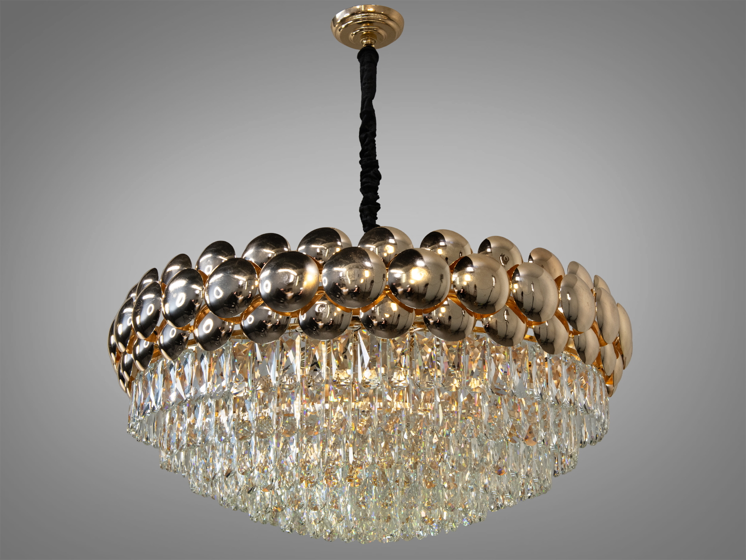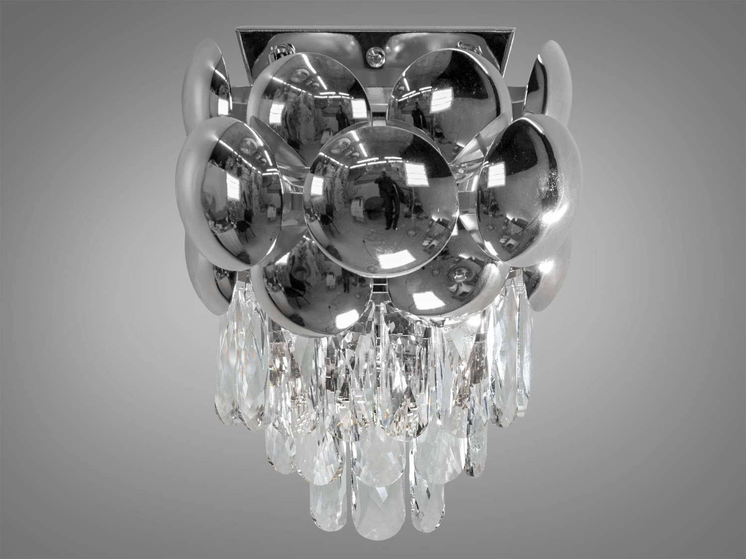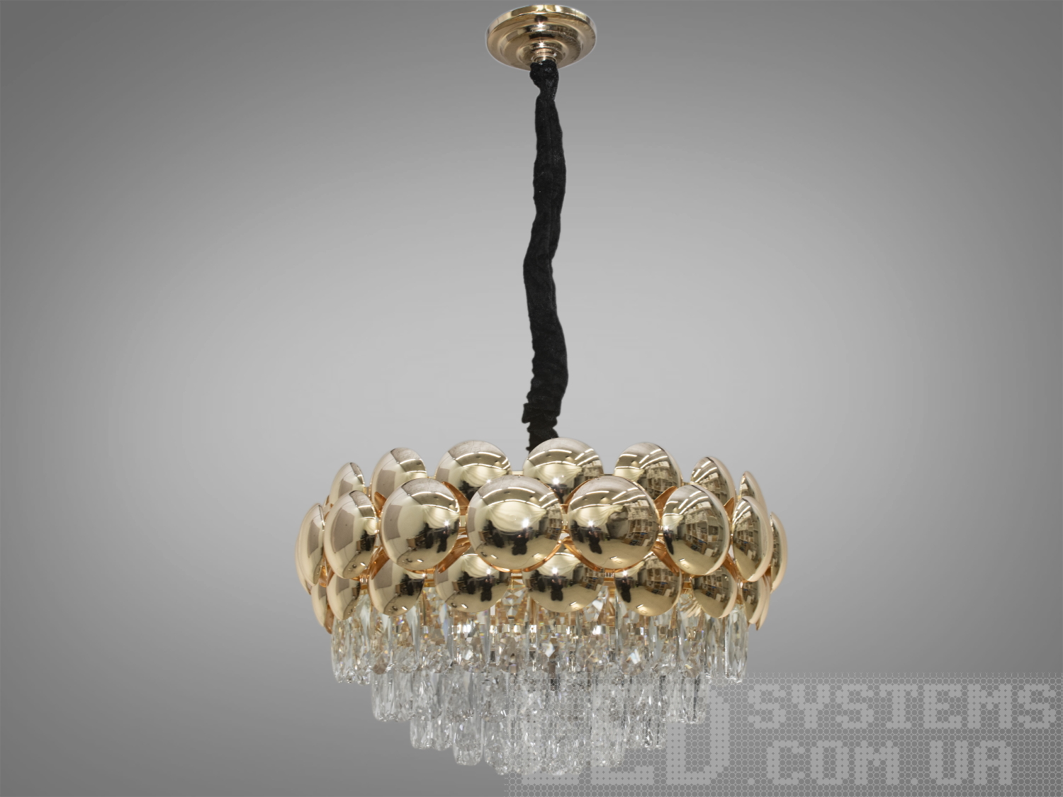З його металевою основою, блискучою як дзеркало, та рядами прозорих кришталів, світильник випромінює мерехтливе та іскрите світло, створюючи атмосферу елегантності та святковості. Кристали різного розміру, розташовані навколо лампочок цоколь Е14, немов танцюють у ритмі відблисків та променів, що виходять з їхнього центру.