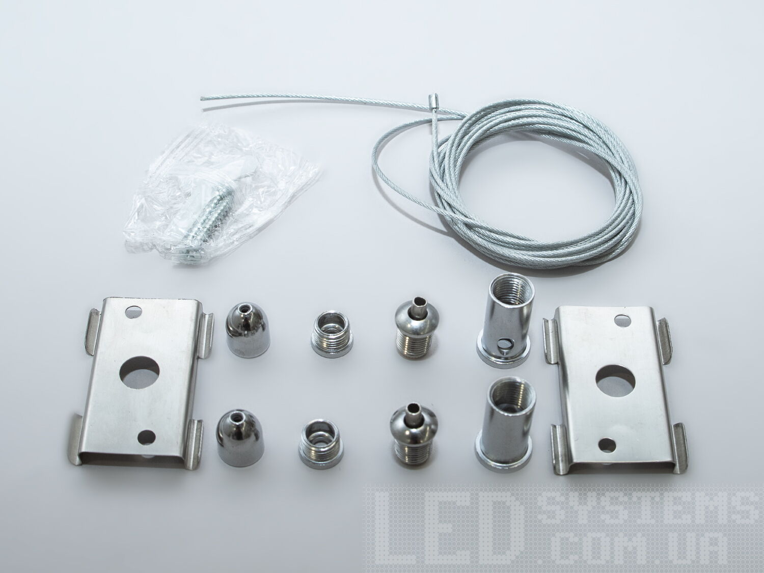 Підвіс для використання накладних треків на регульованій відстані від стелі. Завдяки кліпсі "швидкий монтаж" для встановлення, не вимагає свердління шинопроводу. У комплекті 2 троси з повним набором монтажних елементів.
