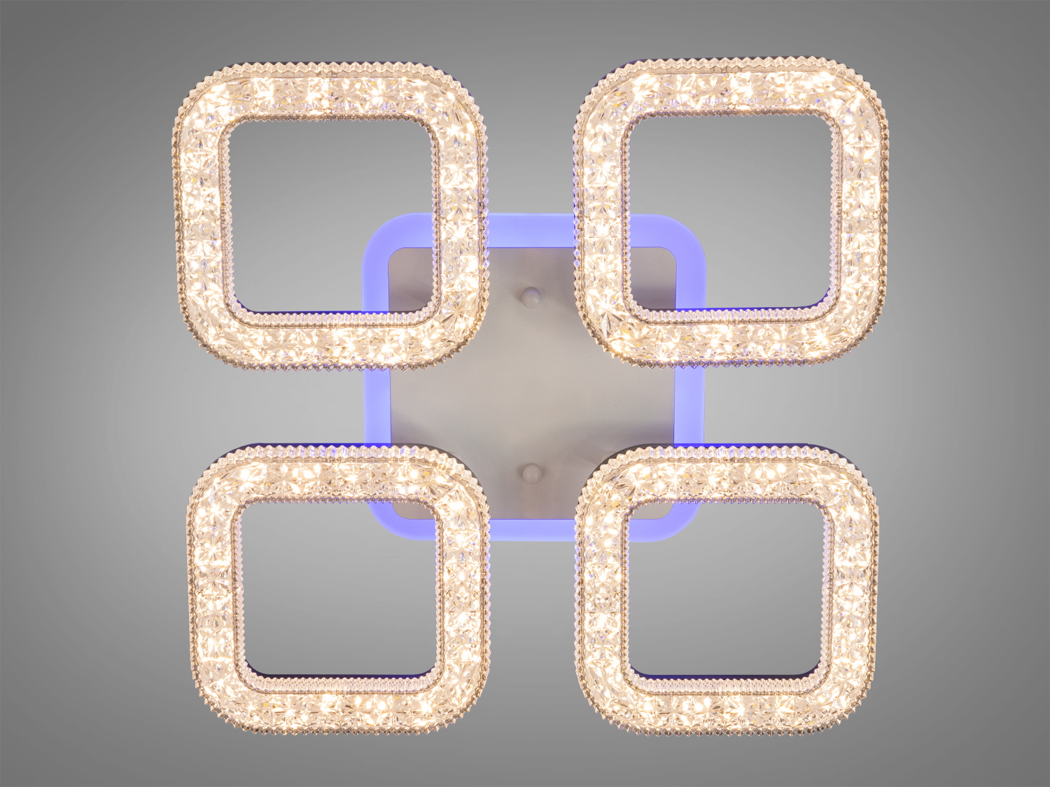 Світильник складається з чотирьох квадратних елементів, прикрашених кристалічними рамками. Це надає йому елегантності та вишуканості, дозволяючи стати центральним елементом декору в будь-якому приміщенні.