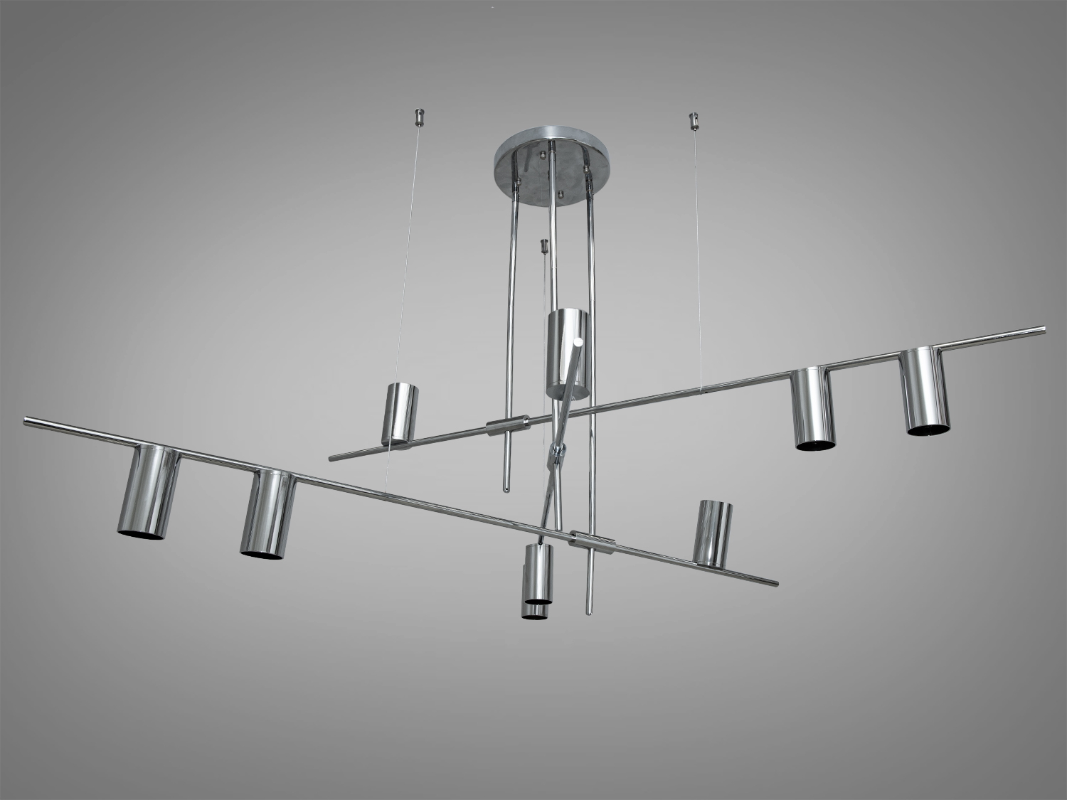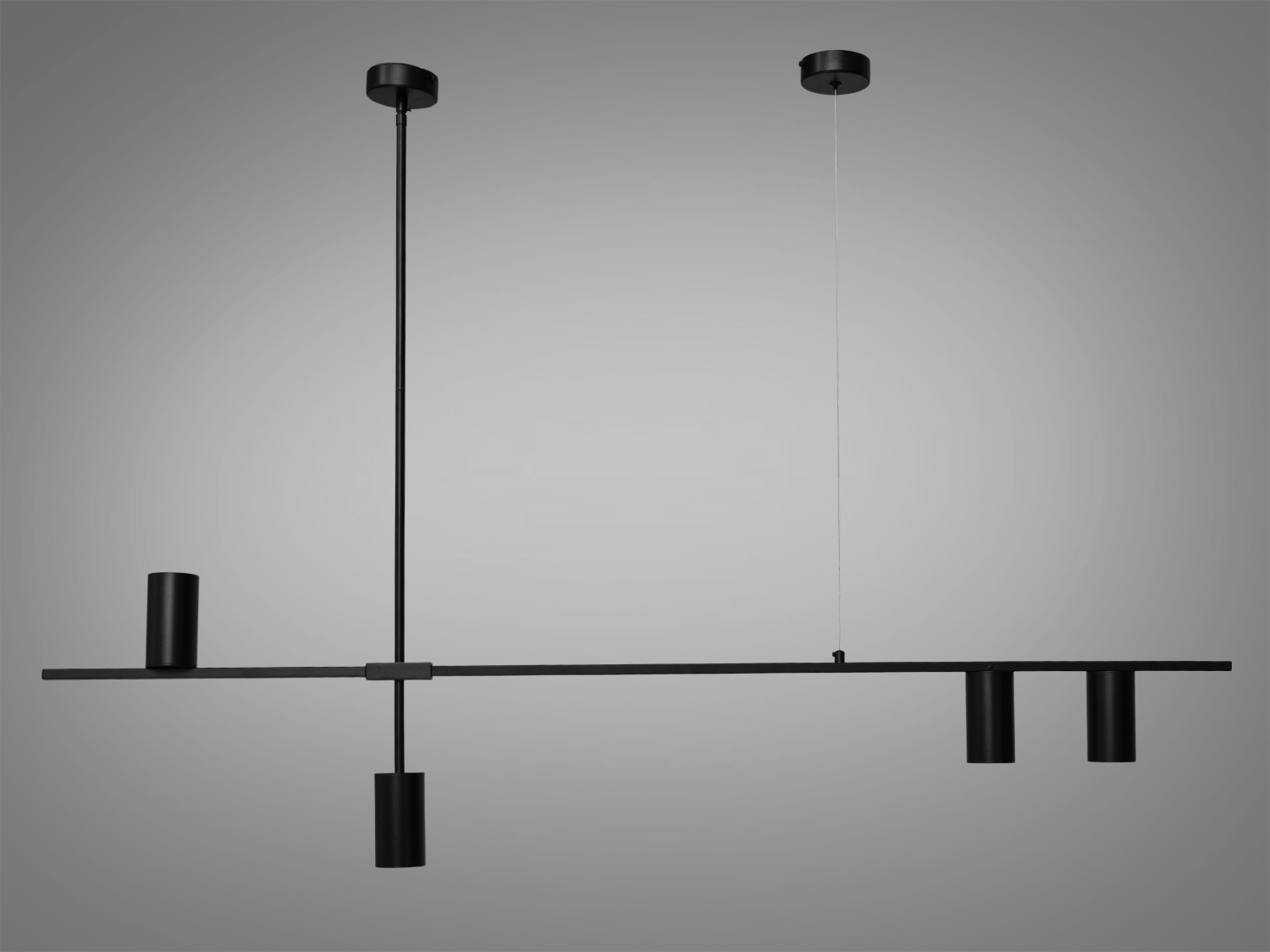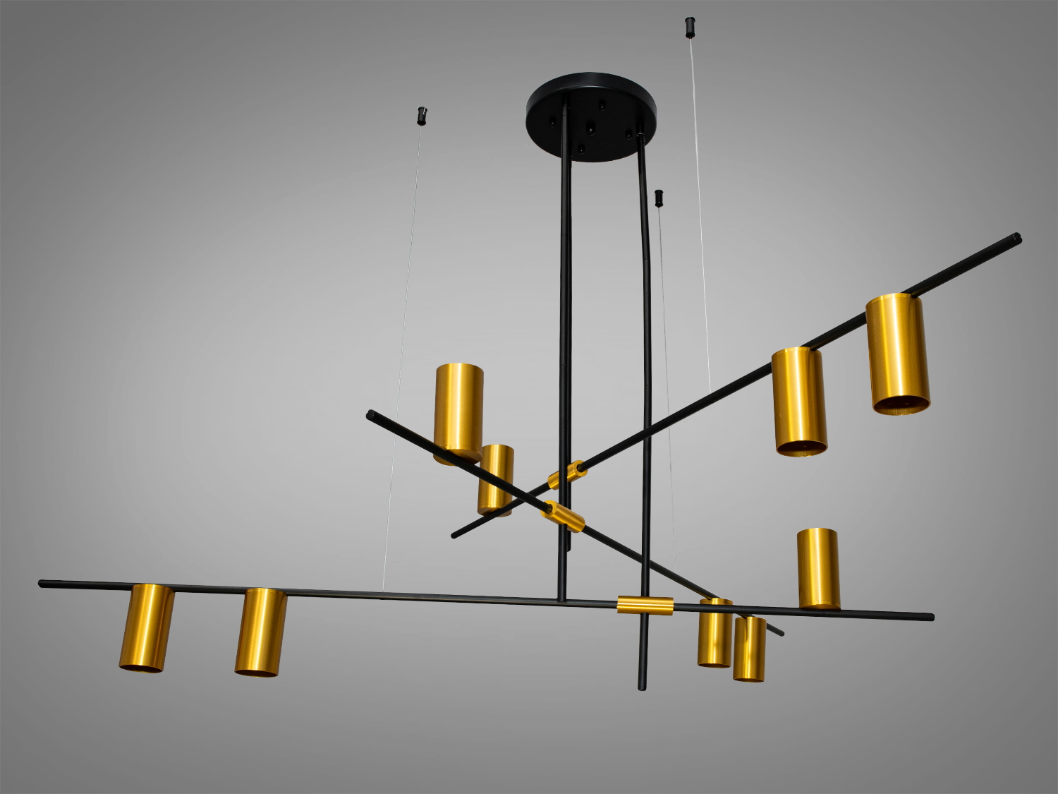 Її унікальний вигляд складається з двох трубок, з'єднаних хрест-навхрест зі зміщенням. Центральна частина люстри, де кріпиться до стельової основи, має один цоколь для лампи. Це створює певний центральний пункт світла. На паралельній трубці, розташованій горизонтально до землі, розташовано три цоколі для ламп. Два з боку підвісу та одна з боку з'єднання двох трубок.
