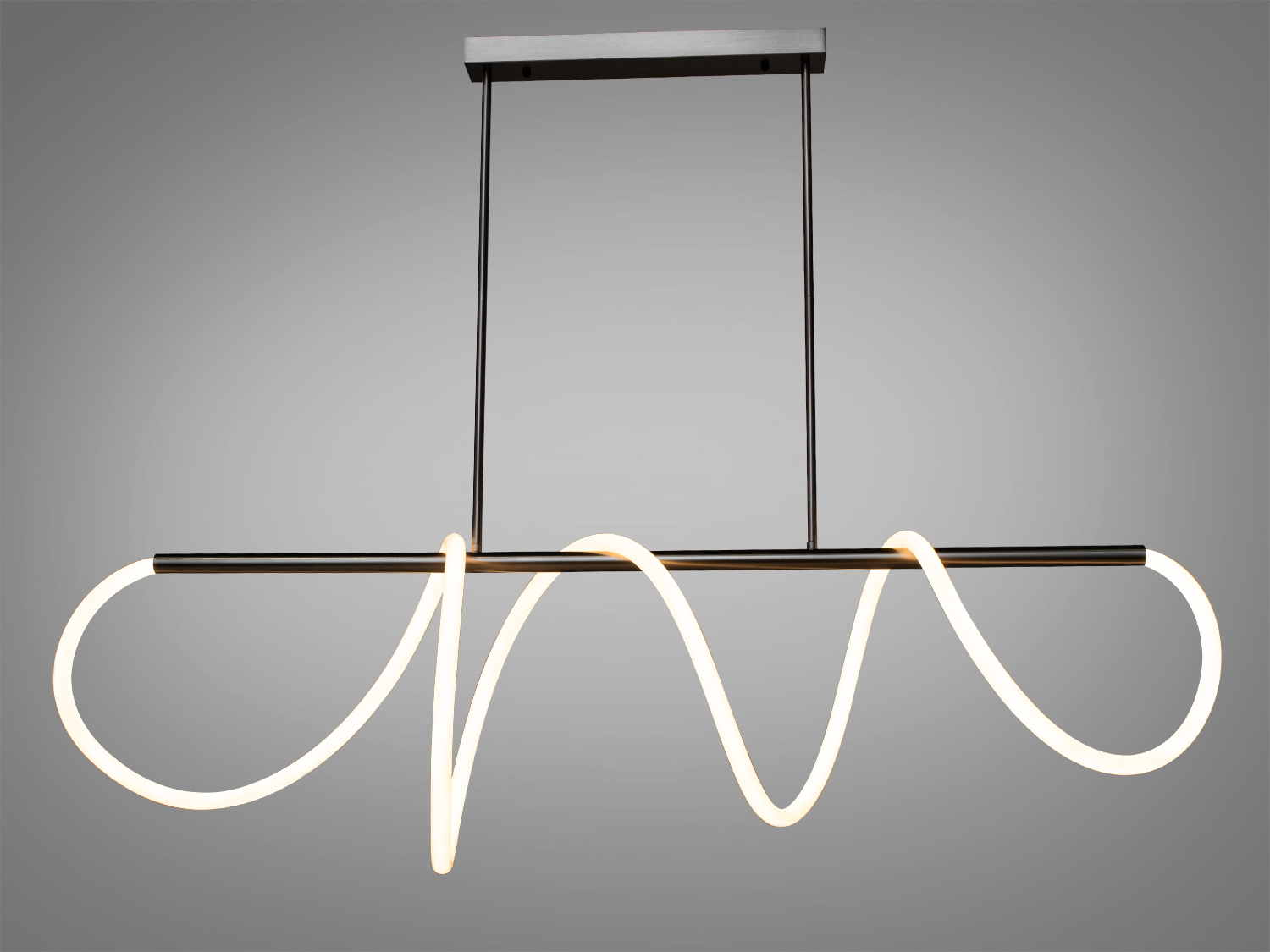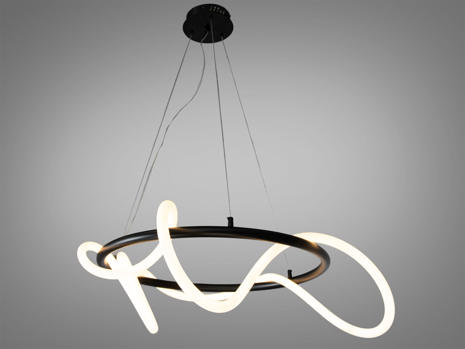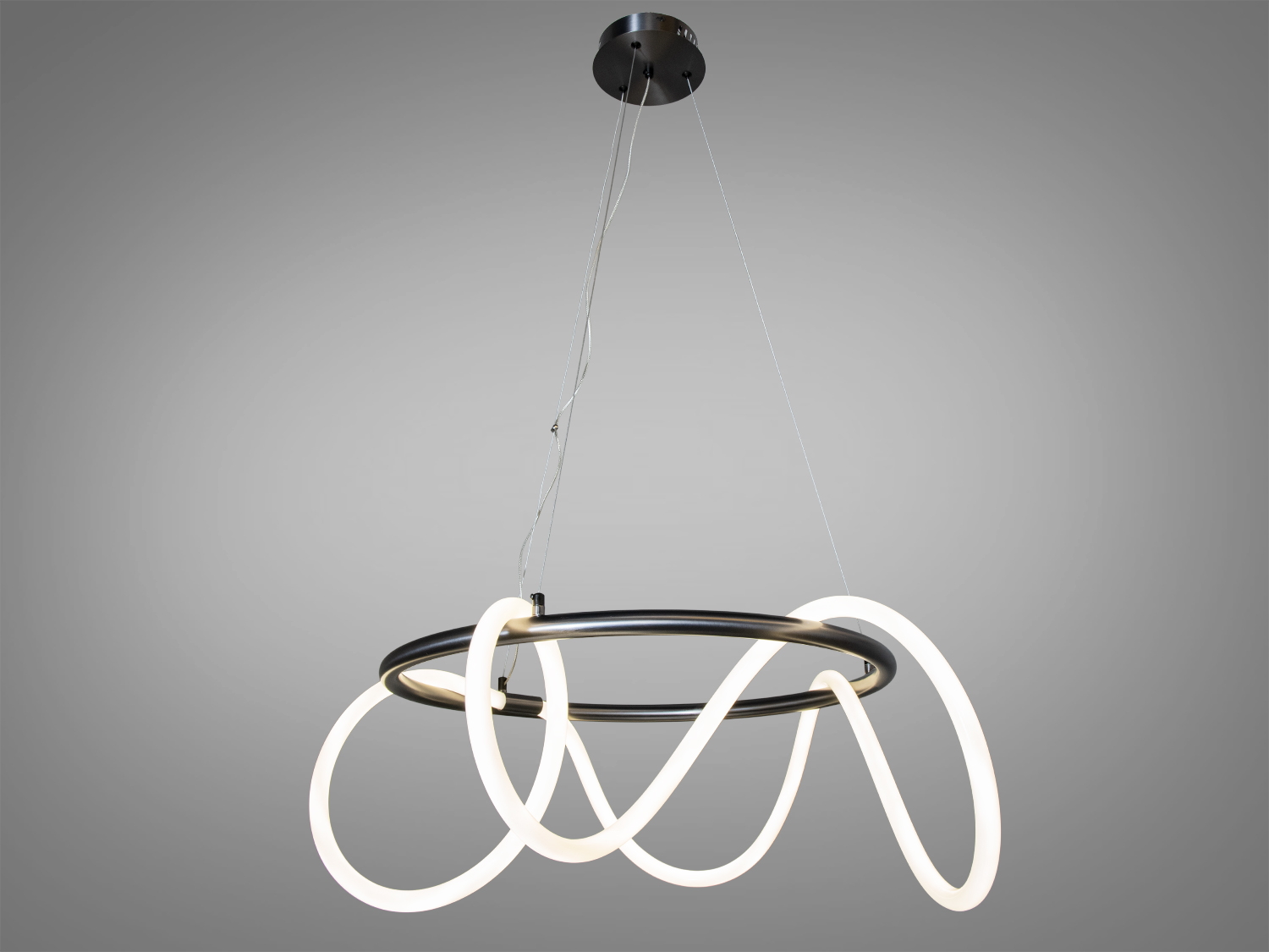 Гнучка силіконова трубка обертається навколо металевої основи, створюючи різні хвилеподібні форми, що світяться, що робить його унікальним і не схожим на інші світильники.