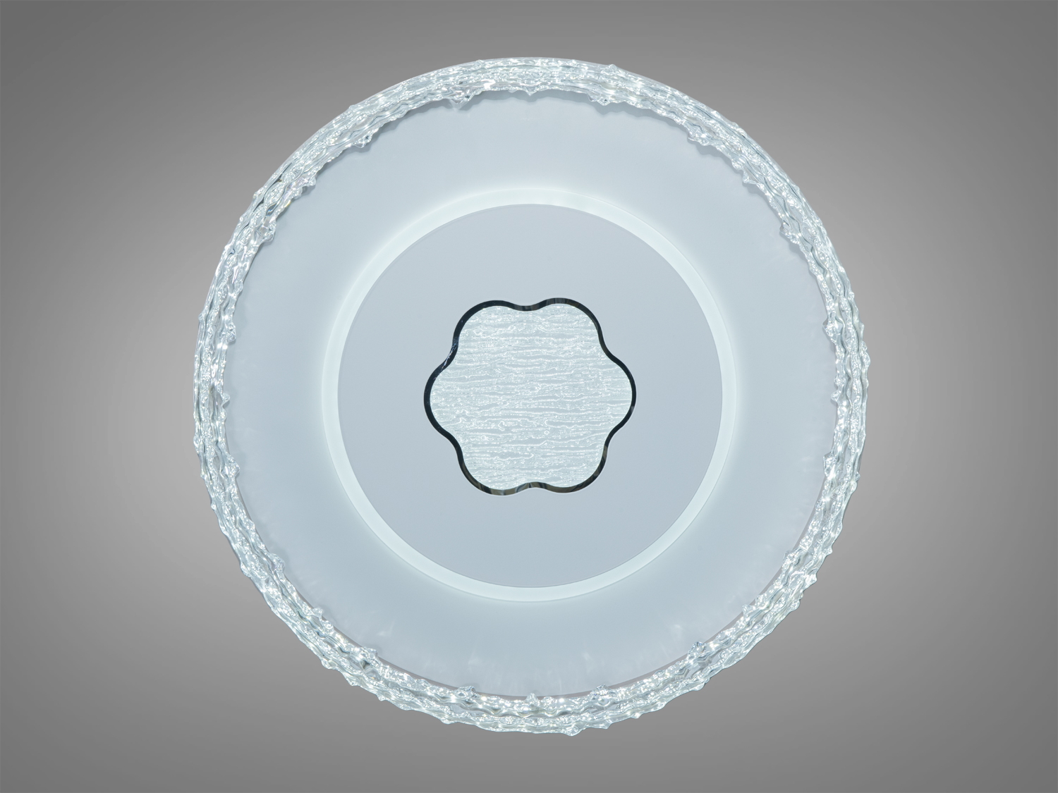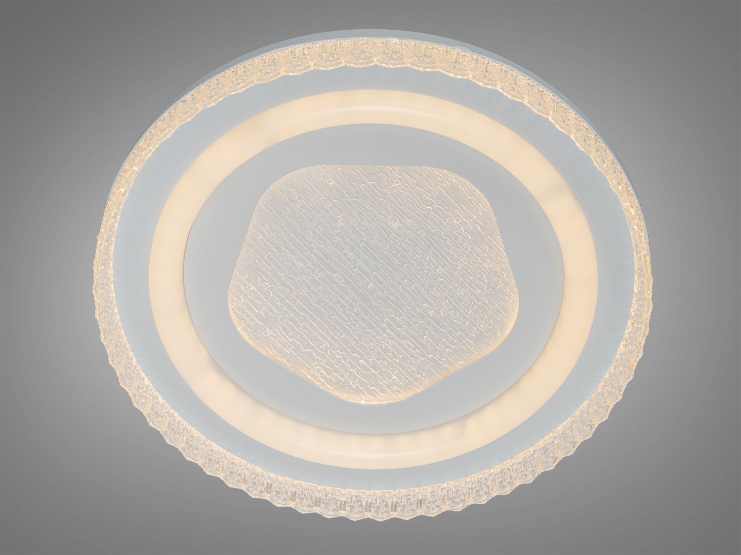 Потолочна світлодіодна люстра Diasha WG5157AWH-LS білого кольору вирізняється оригінальним поєднанням геометричної форми та сучасних матеріалів. Центральний шестикутник з текстурованою поверхнею гармонійно доповнює прозоре хвилясте обрамлення, яке створює унікальний світловий ефект. Такий дизайн надає виробу сучасного вигляду та дозволяє йому стати стильним акцентом у будь-якому інтер’єрі.