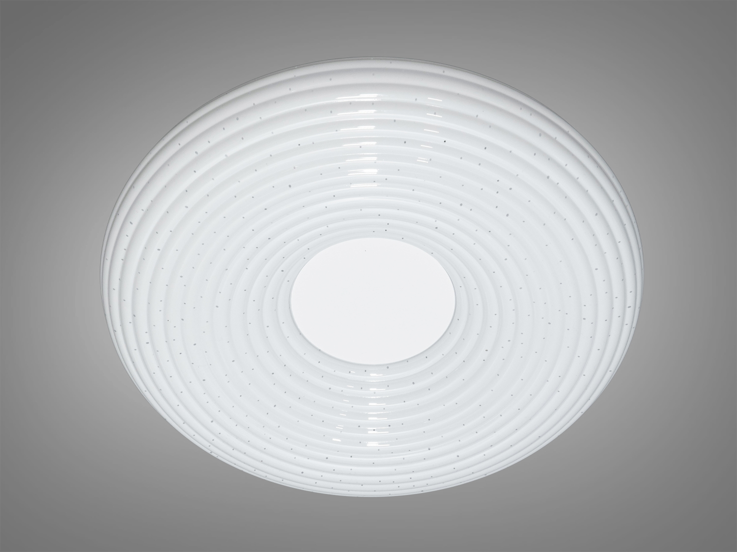 LED люстра виготовлена з міцного акрилу, який служить одночасно корпусом та розсіювачем, гарантуючи рівномірне та приємне світло без сліпучих ефектів. Цей матеріал забезпечує довговічність та стійкість світильника до механічних пошкоджень.