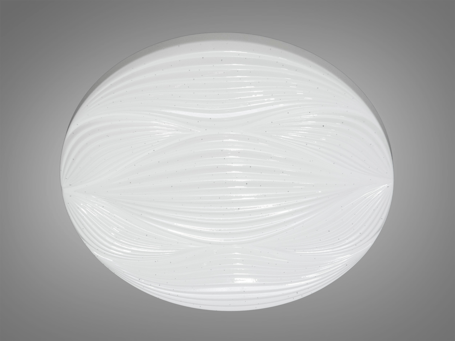 LED люстра виготовлена з міцного акрилу, який служить одночасно корпусом та розсіювачем, гарантуючи рівномірне та приємне світло без сліпучих ефектів. Цей матеріал забезпечує довговічність та стійкість світильника до механічних пошкоджень.