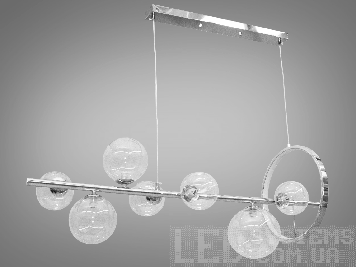 Довга люстра "Бульбашки" в стилі Loft, колір хром, на 7 ламп