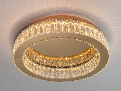 Гармонійна кришталева LED люстра для зали, колір золото, 40W на 6м2
