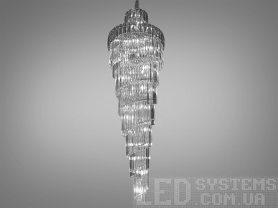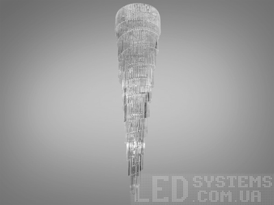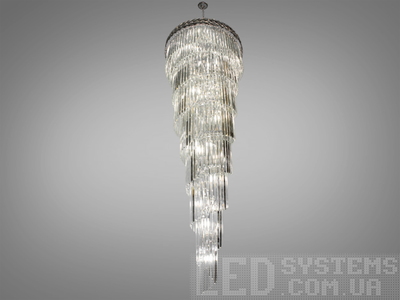 Шикарна кришталева каскадна LED люстра для холу, колір хром, 165W на 25м2