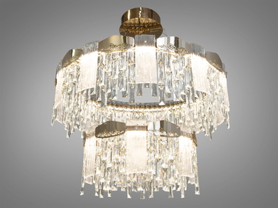 Двоярусна кришталева світлодіодна люстра у вітальню, колір золото, 110W