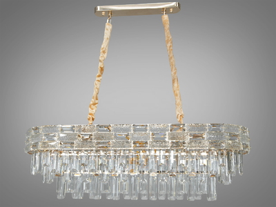 Оригінальна кришталева люстра витягнутої форми в їдальню, колір золото