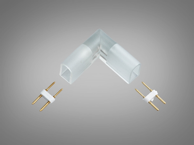 Кутовий конектор для неону 220В прозорий 2 контакти