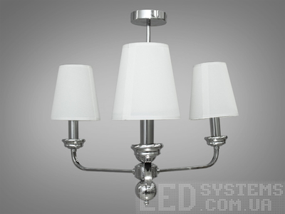 Невелика стильна люстра з абажурами в спальню, колір хром, на 3 лампи