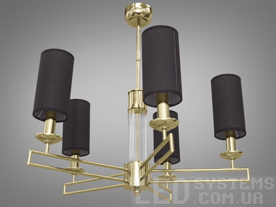 Граціозна люстра в зал з чорними абажурами, колір золото, на 5 ламп