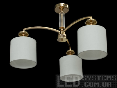 Сучасна люстра з абажурами на 3 лампи в спальню, колір золото