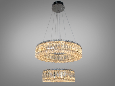 Двоярусна люстра 8693-600+400CH-LS хром кришталеві підвіски