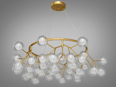 Витончена люстра "Світлячок" у вітальню, колір золото сатин, 36 ламп