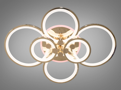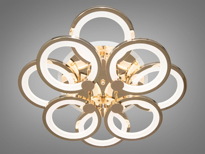 Стельова люстра в зал із підсвіткою, колір золото, 140 W на 20 м2