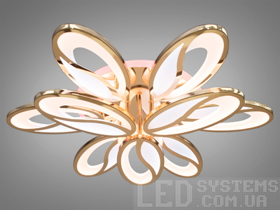 Витончена LED люстра для залу з димером, колір золото, 90W на 13м2